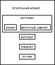 Как полагается это читать? От супертипа: ЛЕТАТЕЛЬНЫЙ АППАРАТ, который должен быть АЭРОПЛАНОМ, ВЕРТОЛЕТОМ, ПТИЦЕЛЕТОМ или ДРУГИМ ЛЕТАТЕЛЬНЫМ АППАРАТОМ. От подтипа: ВЕРТОЛЕТ, который относится к типу ЛЕТАТЕЛЬНОГО АППАРАТА. От подтипа, который является одновременно супертипа: АЭРОПЛАН, который относится к типу ЛЕТАТЕЛЬНОГО АППАРАТА и должен быть ПЛАНЕРОМ или МОТОРНЫМ САМОЛЕТОМ.