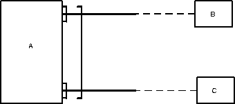 Связь представляется в виде линии, связывающей две сущности или ведущей от сущности к ней же самой. При это в месте "стыковки" связи с сущностью используются трехточечный вход в прямоугольник сущности, если для этой сущности в связи могут использоваться много (many) экземпляров сущности, и одноточечный вход, если в связи может участвовать только один экземпляр сущности. Обязательный конец связи изображается сплошной линией, а необязательный - прерывистой линией.