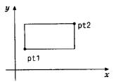 Здесь предполагается, что прямоугольник представлен в стандартном виде, т.е. координаты точки pt1 меньше соответствующих координат точки pt2. Следующая функция гарантирует получение прямоугольника в каноническом виде.