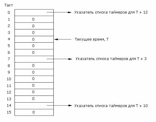 оптимизирующий работу с таймерами, называется колесо времени. Он использует массив (см. рисунок 6-36), длина которого пропорциональна