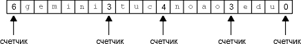 На рисунке 14.6 показано, как хранится имя домена gemini.tuc.noao.edu.