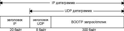 На рисунке 16.2 приведен формат 300-байтного BOOTP запроса и отклика.