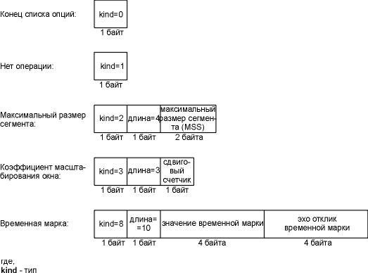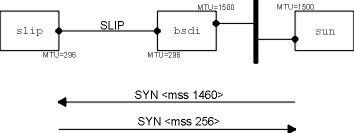 И последнее поле в выводе на рисунке 18.1, <mss 1024> показывает максимальный размер сегмента (MSS - maximum segment size) , опция, которую устанавливает отправитель. Отправитель не хочет получать TCP сегменты больше чем это значение. Это делается обычно для того, чтобы избежать фрагментации (глава 11, раздел "Фрагментация IP"). Мы рассмотрим максимальный размер сегмента в разделе "Максимальный размер сегмента" этой главы, а формат различных опций TCP покажем в разделе "Опции TCP" этой главы.
