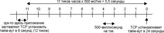 Как выбирается номер последовательности? В 4.4BSD (и в большинстве Berkeley реализаций) при инициализации системы исходный номер последовательности устанавливается в 1. Подобная практика осуждается требованием к хостам Host Requirements RFC. Затем эта величина увеличивается на 64000 каждые полсекунды и возвращается в значение 0 через каждые 9,5 часов. (Это соответствует счетчику, который увеличивается на единицу каждые 8 микросекунд, а не каждые 4 микросекунды.) Кроме того, каждый раз, когда устанавливается соединение, эта переменная увеличивается на 64000.
