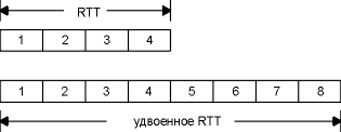 Рисунок 20.11 Удвоение RTT удваивает емкость канала.
