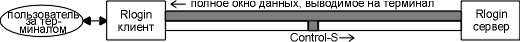 Рисунок 26.3 Функционирование Rlogin соединения в случае, если сервер поддерживает обмен STOP/START.