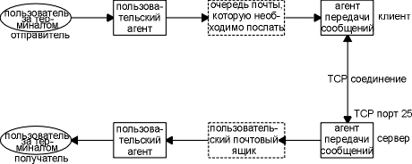 Рисунок 28.2 Принцип доставки почты SMTP.